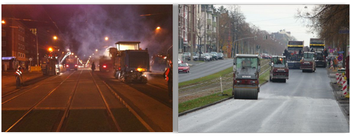 Die Maßnahme konnte aufgrund der verkehrstechnischen Bedeutung dieser Hauptverkehrsstraße nur von Freitagabend 19.00 Uhr bis Montagmorgen 4.00 Uhr erfolgen. Die Zielvorgabe des Auftraggebers war eindeutig: Die Befahrbarkeit musste beginnend mit dem Berufsverkehr am Montagmorgen um 6.00 Uhr wiederhergestellt sein. |